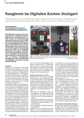 Die Einführung von European Train Control System (ETCS) ist – insbesondere in der Ausprägung Level 2 „ohne Signale“ (L2oS) – mit vielen Chancen und Herausforderungen verbunden. Das gilt nicht nur für die dabei meist im Fokus stehenden Zugfahrten, sondern auch für Rangierfahrten. Im Digitalen Knoten Stuttgart (DKS) konnten erste Vereinfachungen erreicht und weitere erhebliche Vereinfachungspotenziale aufgezeigt werden.