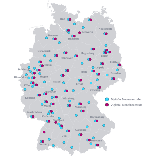 Die Betriebssteuerungsstrategie beinhaltet die Planung und Errichtung von sogenannten Digitalen Steuerzentralen (DSZ) und Digitalen Technikzentralen (DTZ) – unverzichtbare Schlüsselelemente für eine effektive und moderne Betriebssteuerung. Hierbei müssen u. a. die optimalen deutschlandweiten Standorte ermittelt, Standardgebäude konzipiert sowie die Umstellung auf neue Technologien und Vorgehensweisen vollzogen werden.